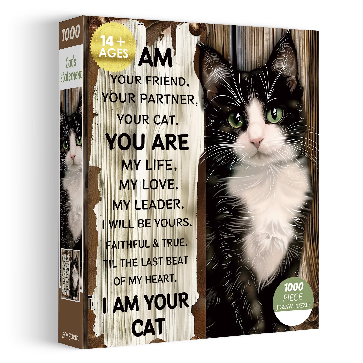 🐱📜Cat's Statement Puzzle: This puzzle features a deeply affectionate cat, its eyes revealing boundless loyalty and love for its owner. Beside the cat is a heartwarming vow, expressing its commitment as a friend, companion, and pet until its last breath.