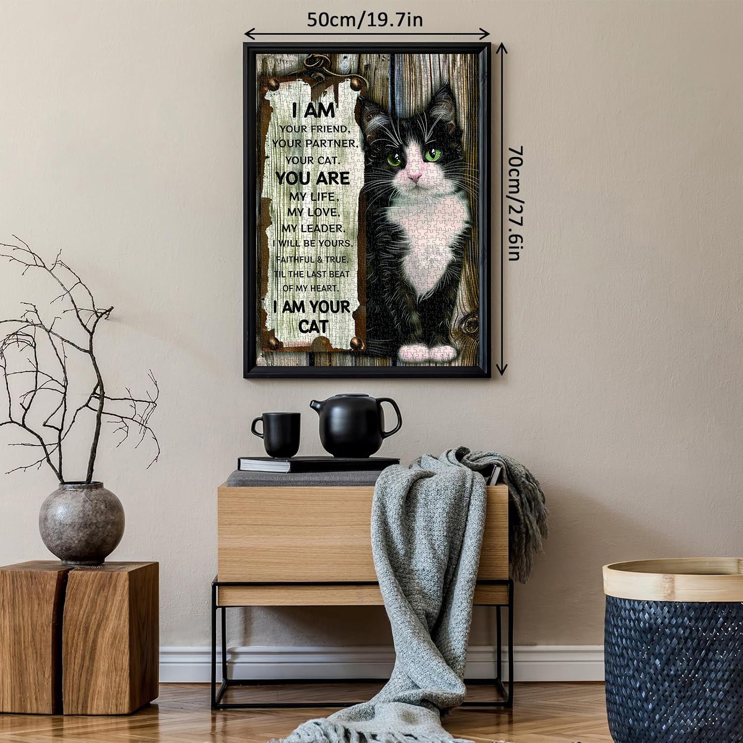 🖼️Finshed Size: 27.6*19.7in/(70*50cm). Jigsaw puzzles 1000 pieces comes with exquisite box and high-resolution poster. This poster is a reference to the puzzle on the front and an introduction to the cat's statement on the back.