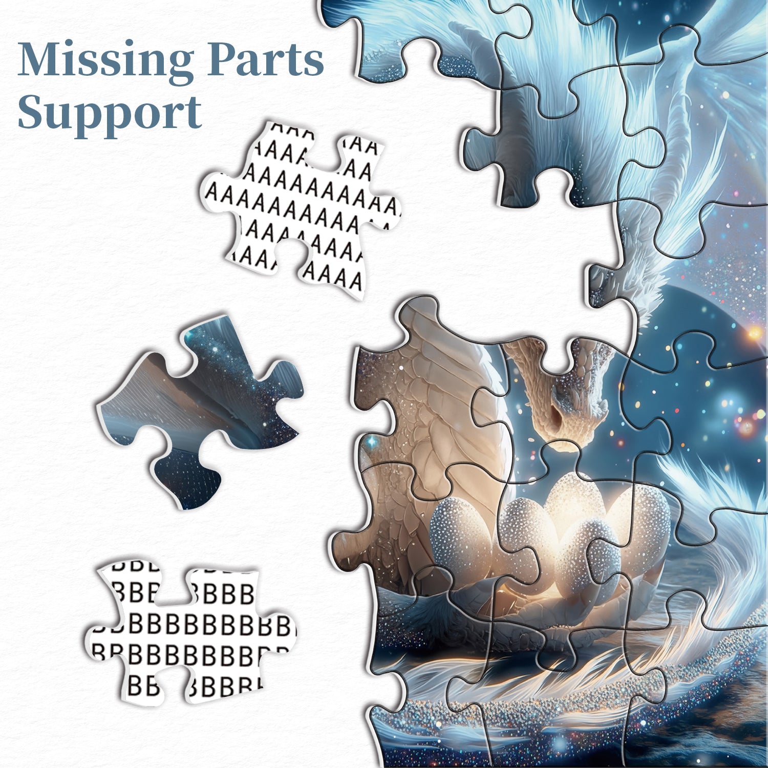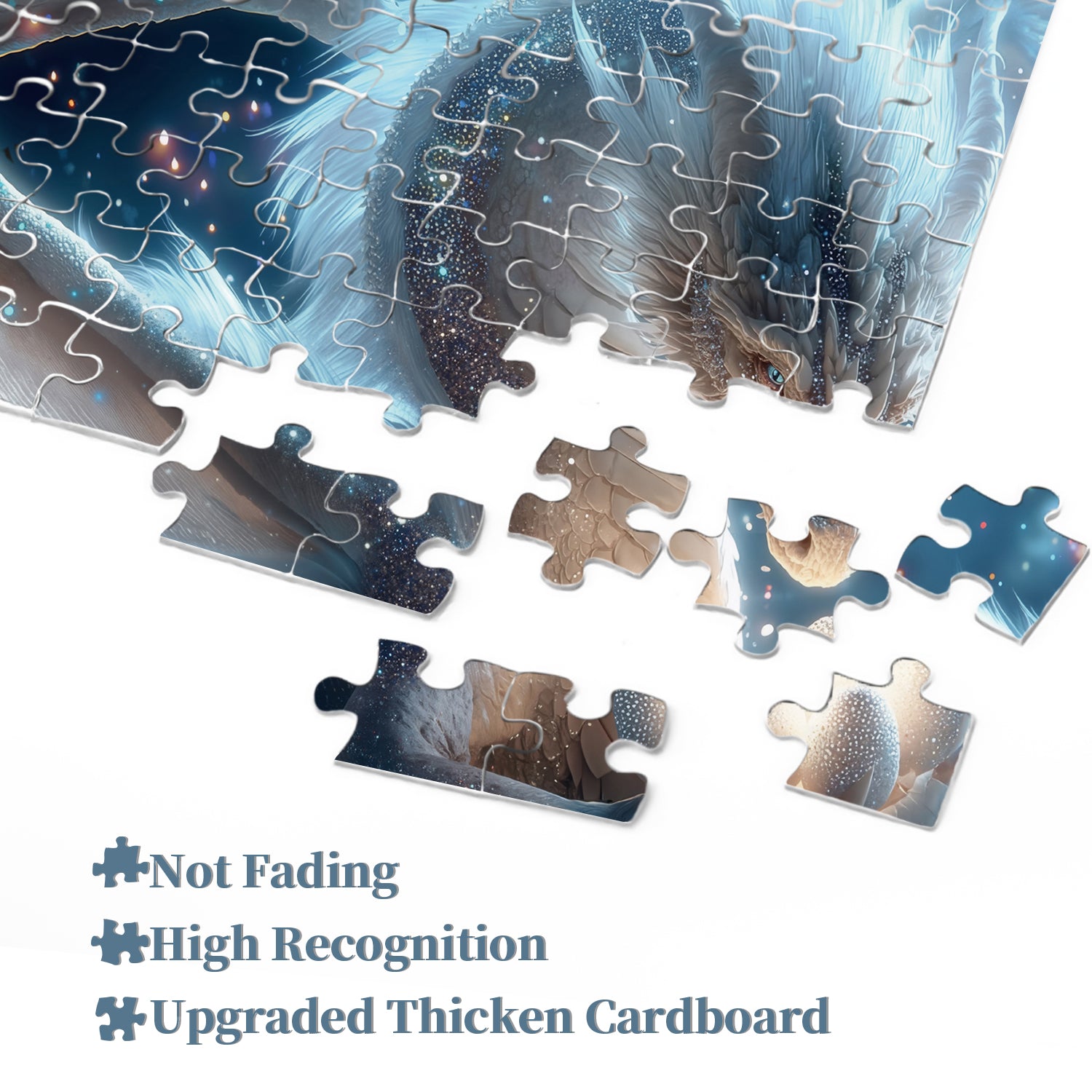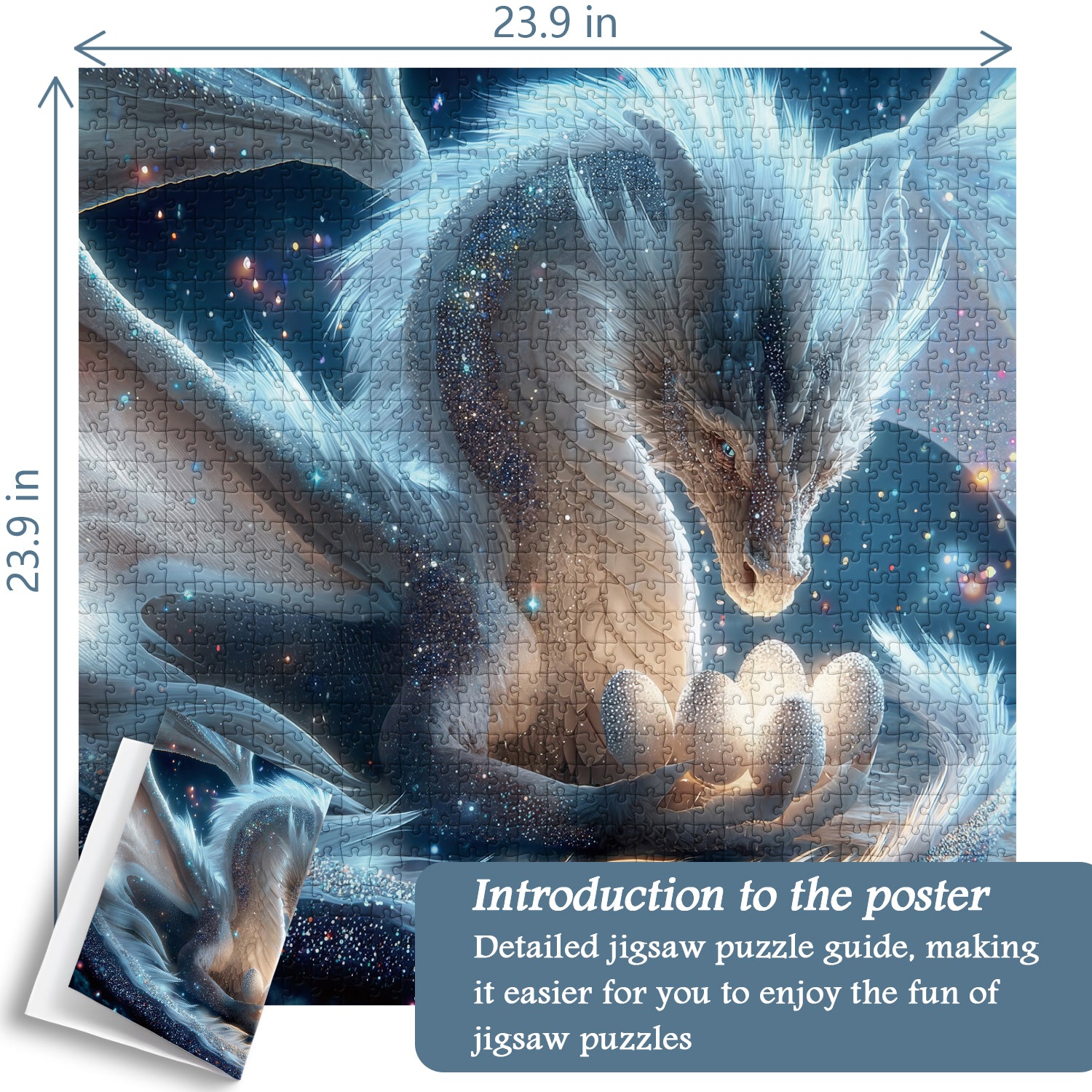 🐉✨Dragon's Gentle Hold: Immerse yourself in a magical and enchanting scene where a white dragon, surrounded by soft light, tenderly guards its eggs. Each puzzle piece is like piecing together a mysterious story, igniting your imagination and creativity!