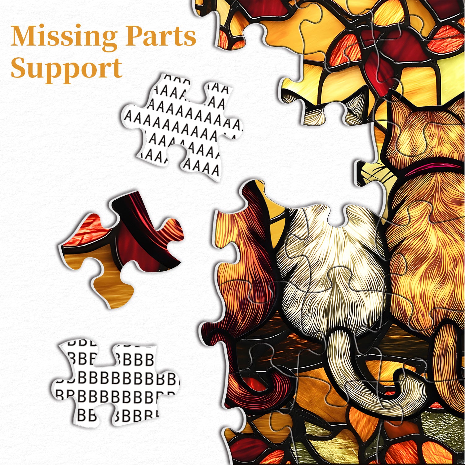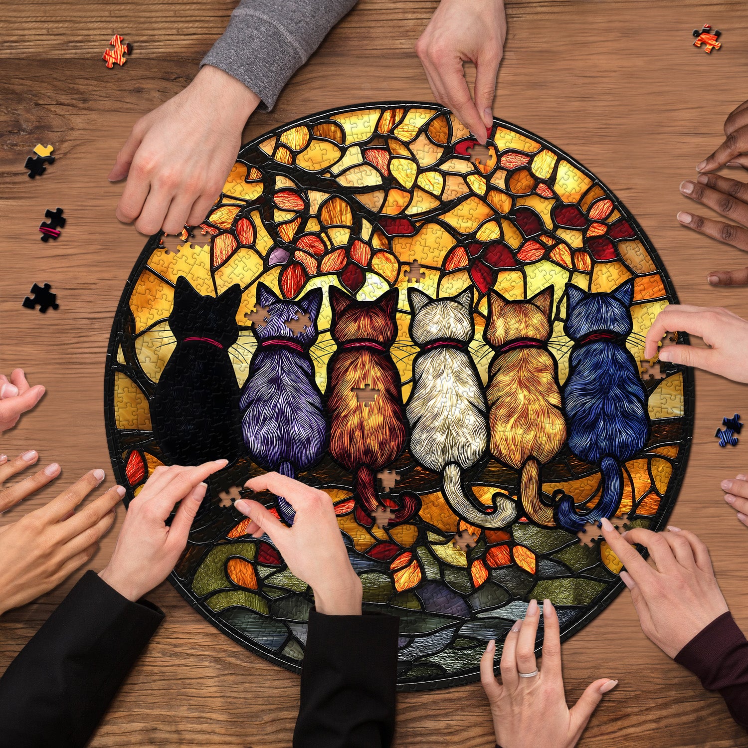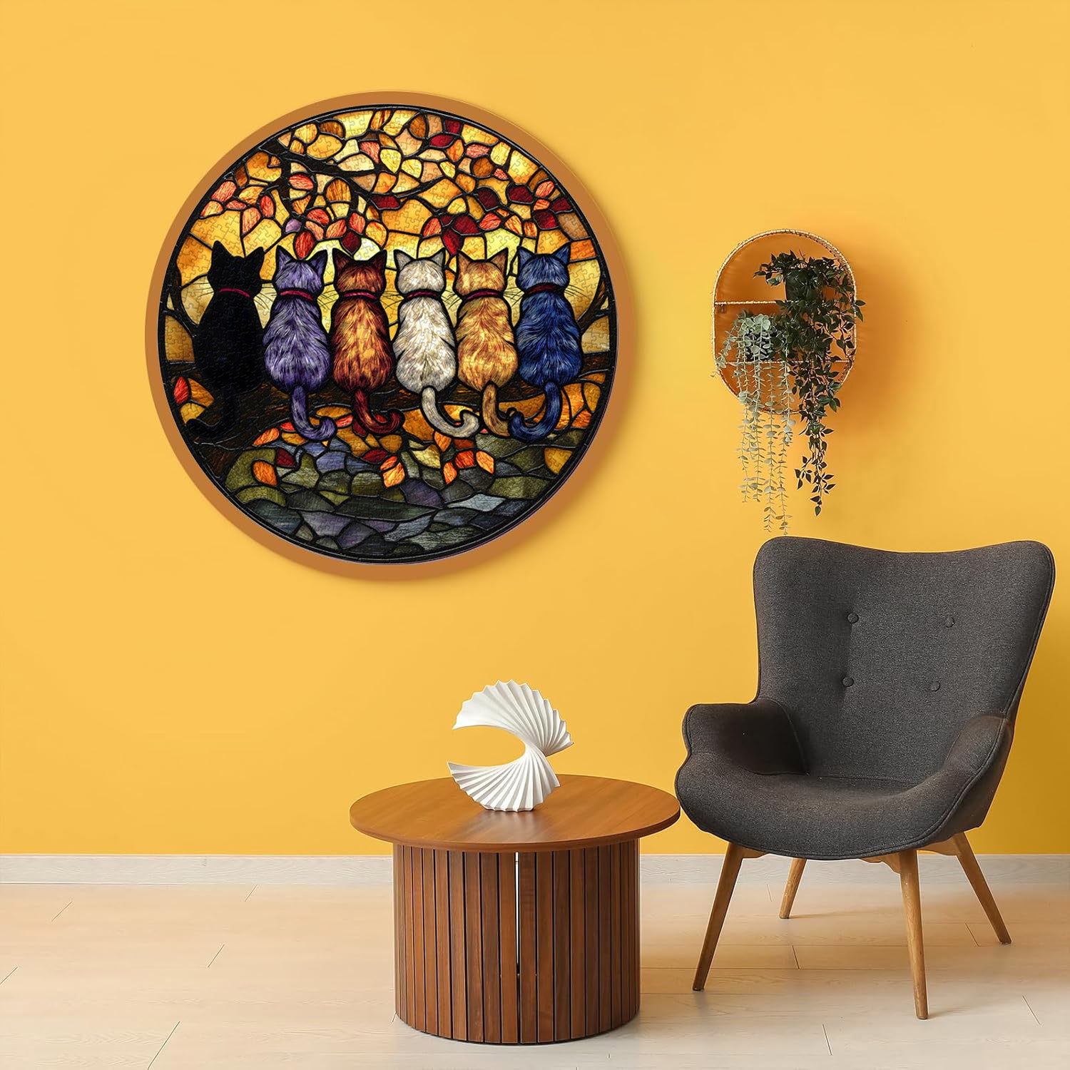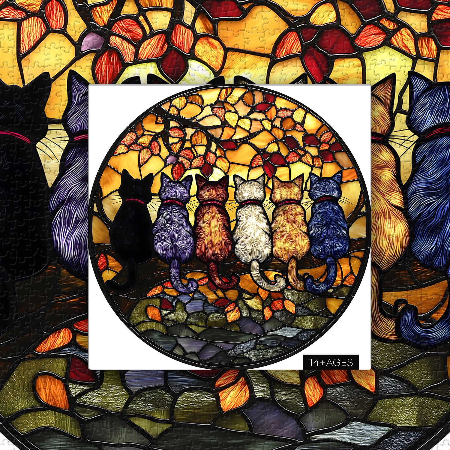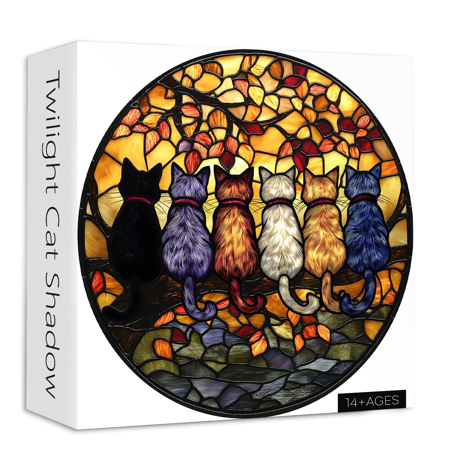 🐈🌈【Twilight Cat ShadowThis puzzle features six cats in different colors, sitting elegantly on branches, seemingly gazing into the distance at something mysterious. In front of the cats is a beautiful stained glass window, its vibrant colors reminiscent of the afterglow of a sunset.🌇🐱