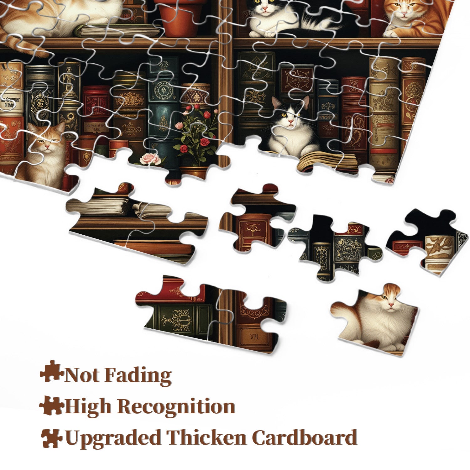 🧩Exquisite Workmenship: 1000 piece jigsaw puzzle cat is printed on three layers of thick white cardboard, precision cutting and clear printing, features vivid color and smooth surface, also has the letters on the back, will help you complete the puzzle.