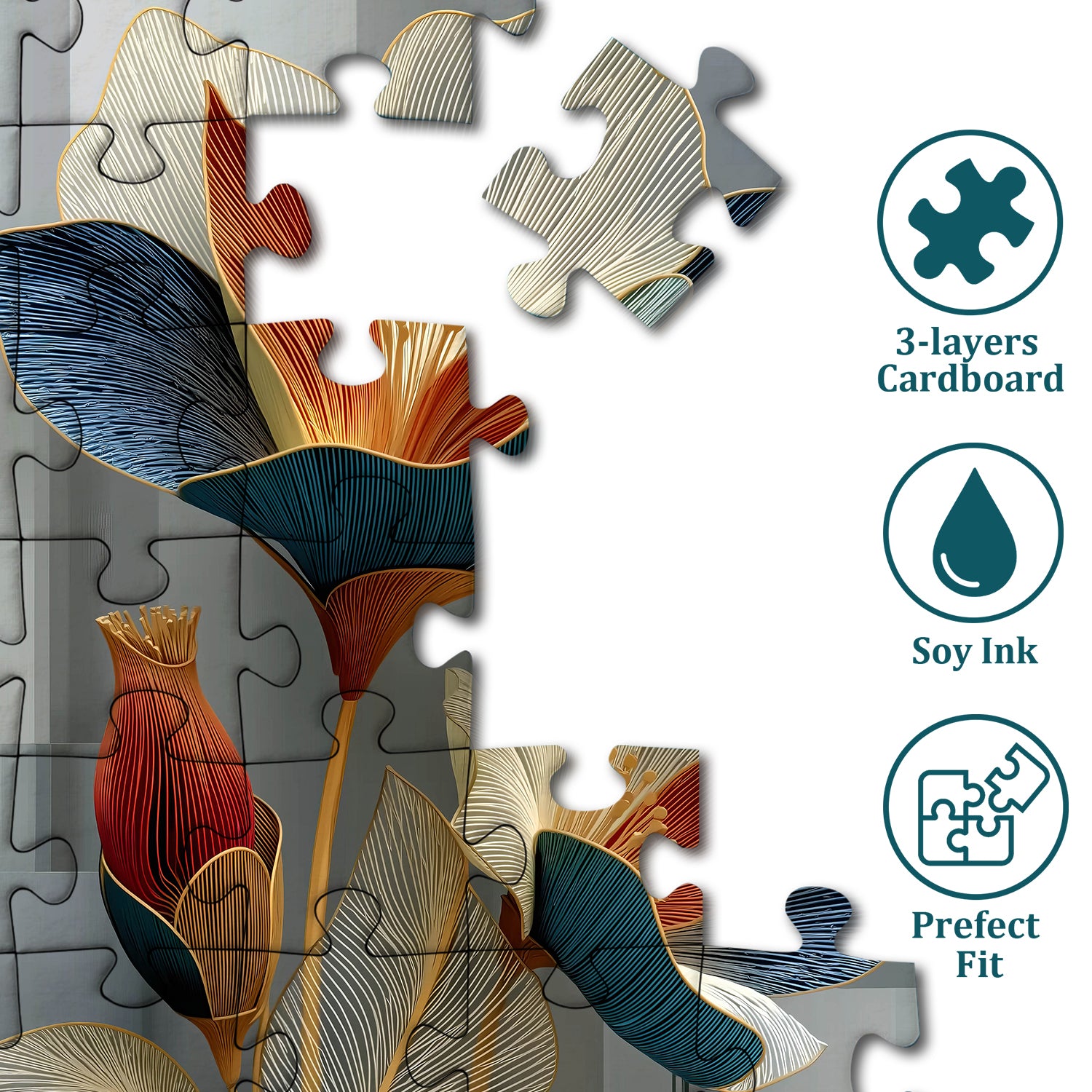 🔍【Exquisite Workmenship】The Linear Petals puzzle are made of 100% recycled thickened cardboard, vividly printed with organic inks, high-quality puzzles, precise cutting, each piece fits tightly, and the splicing process is smooth and fluent.