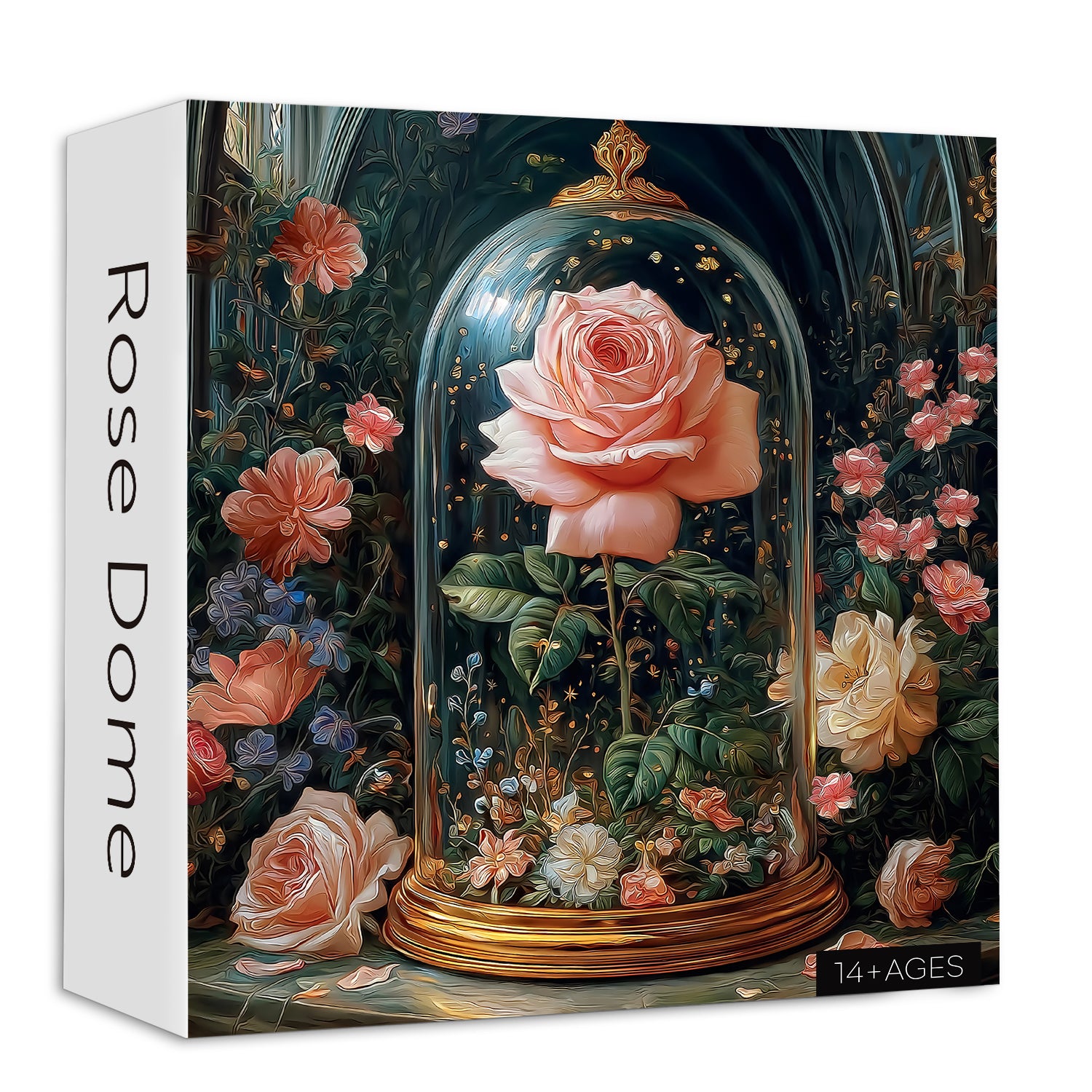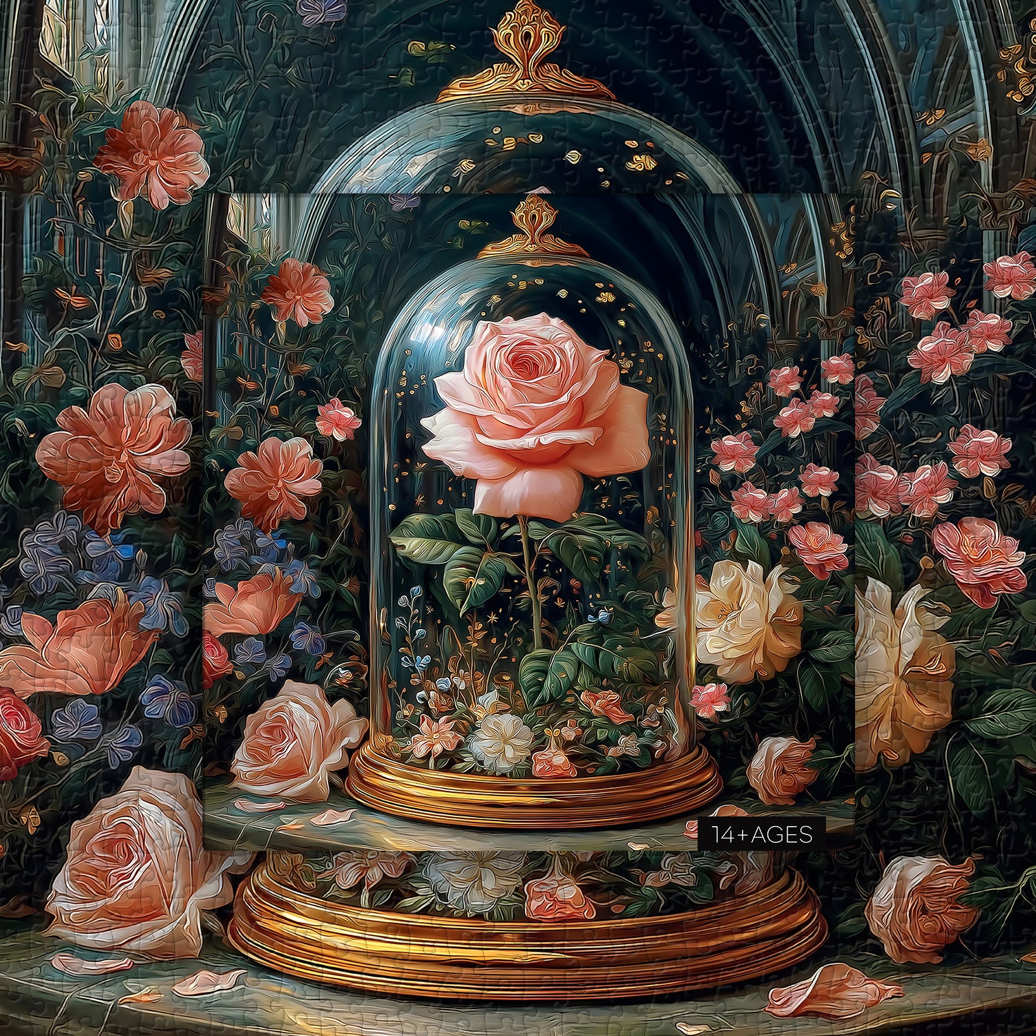 🌹【Rose DomeThis puzzle features a rose protected by a glass dome, symbolizing eternal and pure love. The rose and surrounding flowers are rendered in rich colors, ranging from soft pink to deep blue, and each piece shimmers with a captivating radiance.🌈