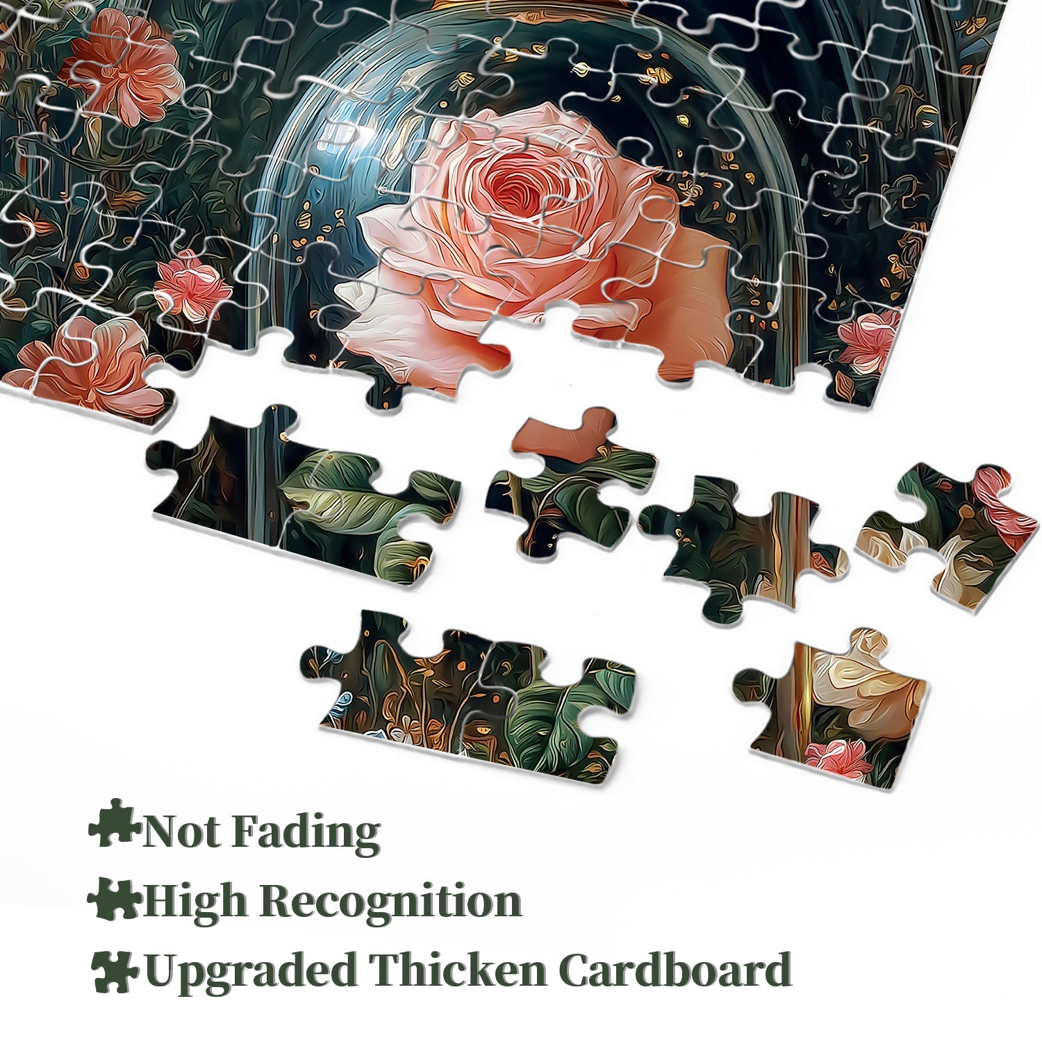🧩【Artistic CraftsmanshipHigh-precision printing technology and high-grade cardboard materials produce vibrant colors and lifelike details. A special anti-reflective coating ensures that each puzzle piece exudes a charming luster at different angles, as if it were truly inlaid with jewel-like flowers.