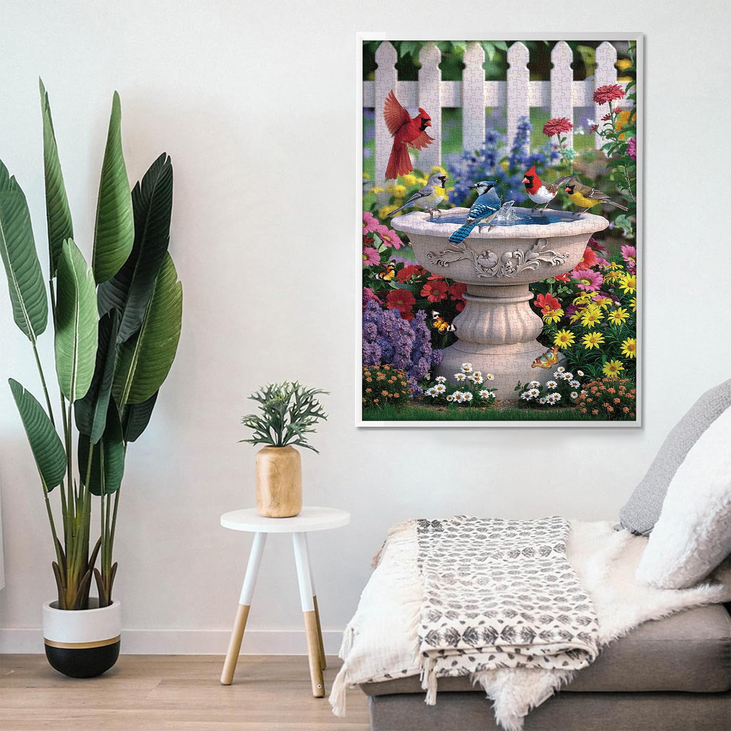 【Spring lmpression】This puzzle shows a vibrant spring garden, full of color and life. In the center of the picture is a white fountain with splashing water, as if you can hear the sound of gurgling water. Several brightly colored birds are playing around the fountain, lively and full of life, and there are butterflies fluttering around. This is not just a painting, but a work of art that shows the beauty of nature!