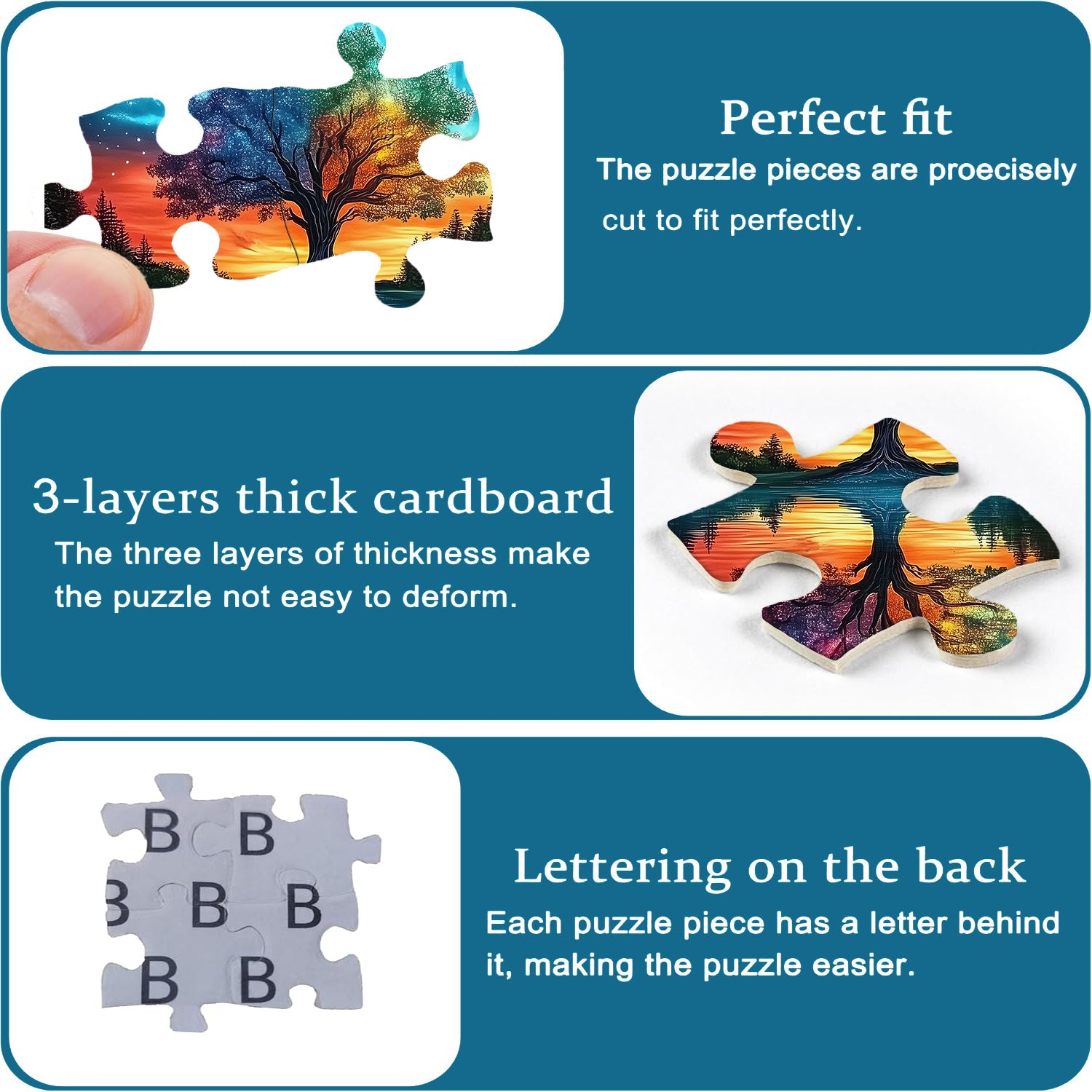 【Exquisite Workmenship】The Tree of Starlight puzzle are made of 100% recycled thickened cardboard, vividly printed with organic inks, high-quality puzzles, precise cutting, each piece fits tightly, and the splicing process is smooth and fluent.