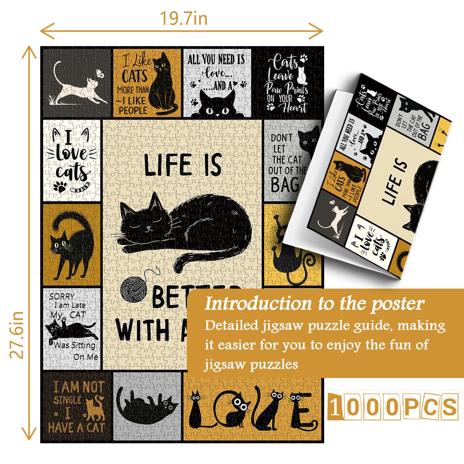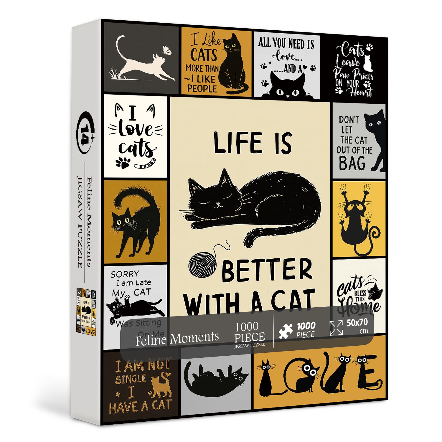 😻😂A cat lover's paradise: This puzzle is tailor-made for all cat lovers. Each pattern is filled with love and humor for cats. From cat silhouettes to adorable illustrations, each pattern showcases a different side of a cat. The hilarious quotes on the puzzle pieces are hilarious, perfectly capturing the playful moments of cats interacting with their humans.🖋️🎨