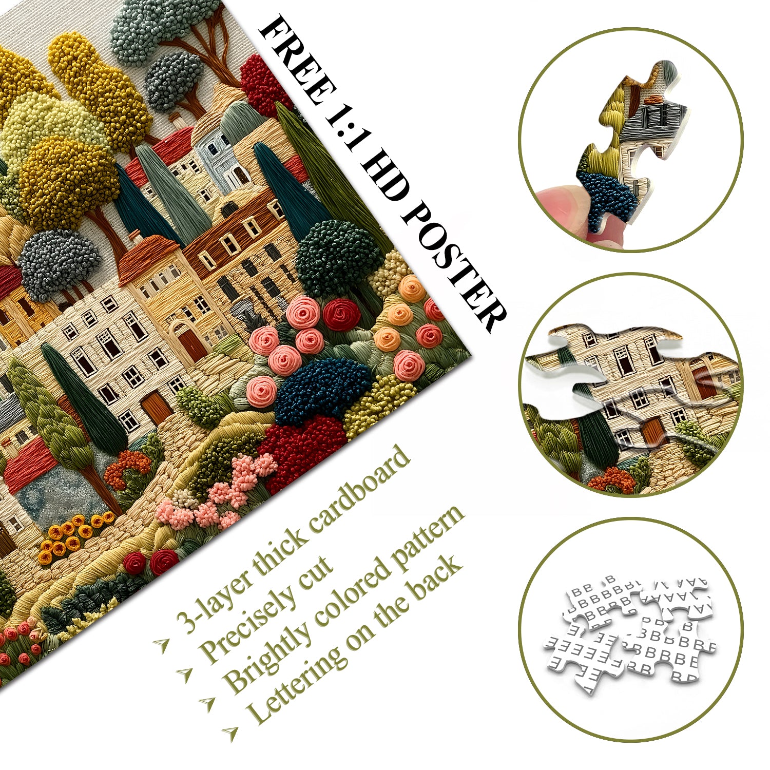 💡🧩【Exquisite Workmenship】Embroidery Village puzzle are made of 100% recycled thickened cardboard, vividly printed with organic inks, high-quality puzzles, precise cutting, each piece fits tightly, and the splicing process is smooth and fluent.